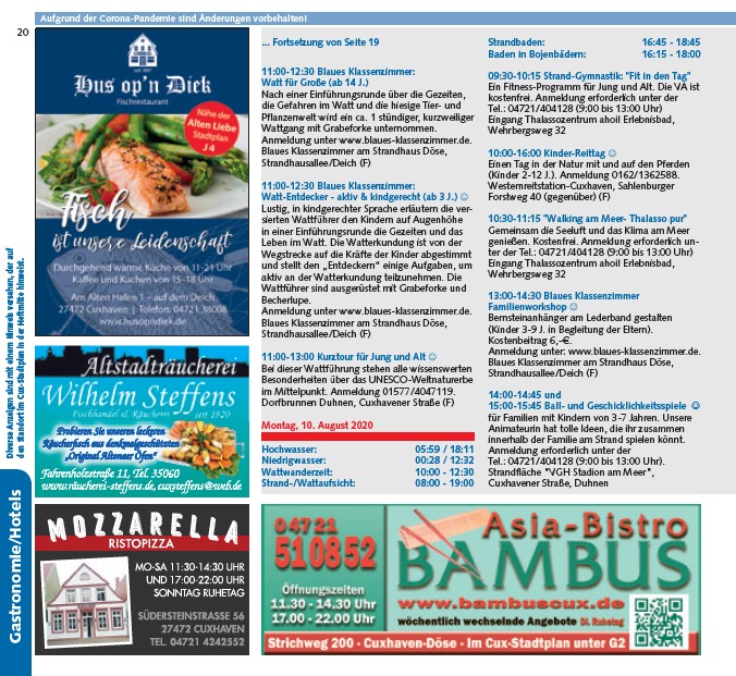 Aufgrund der Corona-Pandemie sind Änderungen vorbehalten! ... Fortsetzung von Seite 19