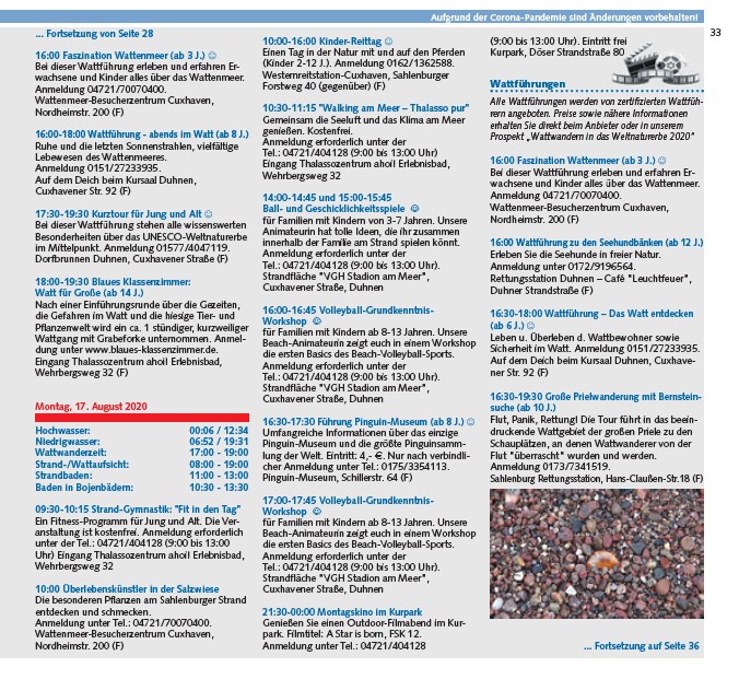 Aufgrund der Corona-Pandemie sind Änderungen vorbehalten!