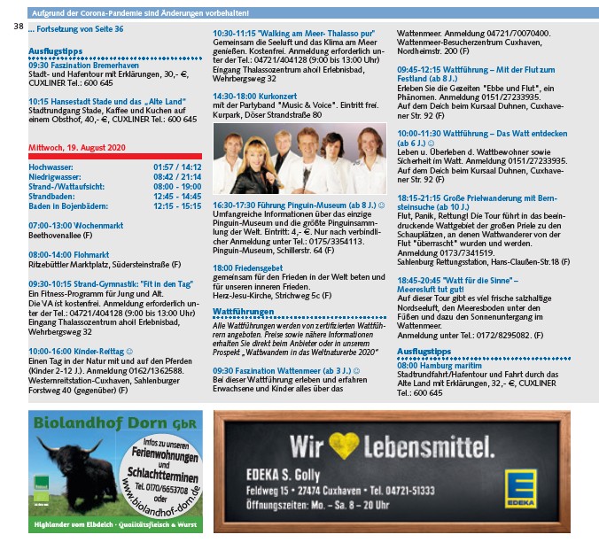 Aufgrund der Corona-Pandemie sind Änderungen vorbehalten! Ausflugstipps