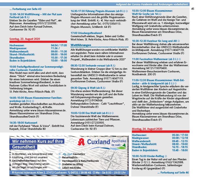 Strand-/Wattaufsicht: 08:00 - 19:00