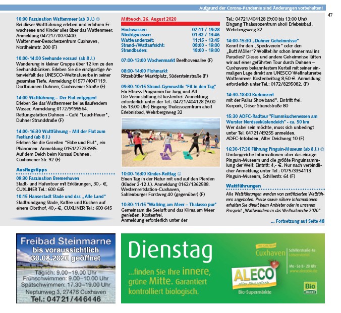bis 13:00 Uhr) Eingang Thalassozentrum ahoi!