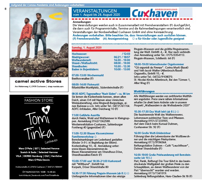 Veranstaltungen der Nordseeheilbad Cuxhaven GmbH sind ohne Kennzeichnung.