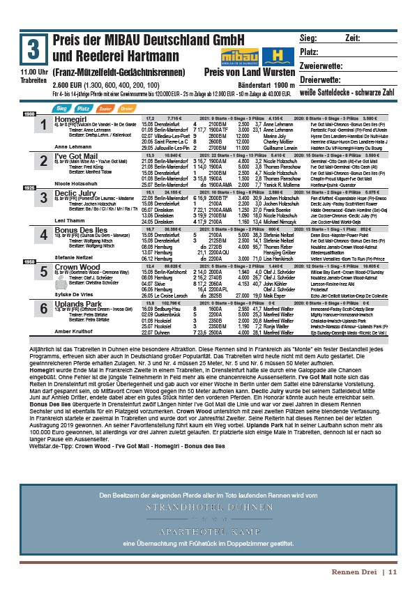 13,3 10.940 € 2021: 22 Starts - 1 Sieg - 13 Plätze 5.410 € 2020: 15 Starts - 2 Siege - 8 Plätze 3.590 €