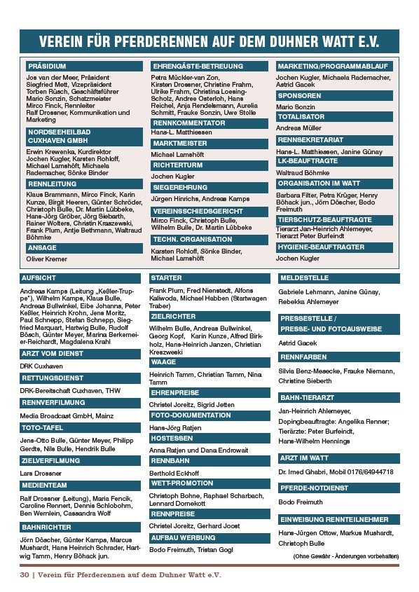30 | Verein für Pferderennen auf dem Duhner Watt e.V.