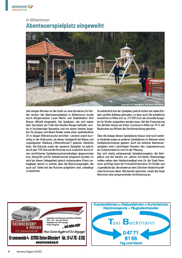 reicher: Der Abenteuerspielplatz in Althemmoor wurde