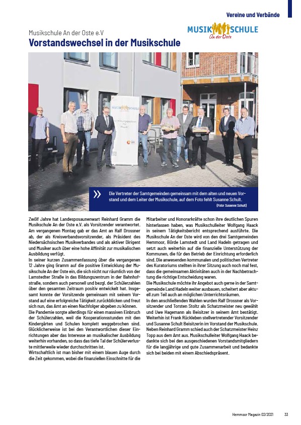 Musikschule An der Oste e.V. als Vorsitzender verantwortet.