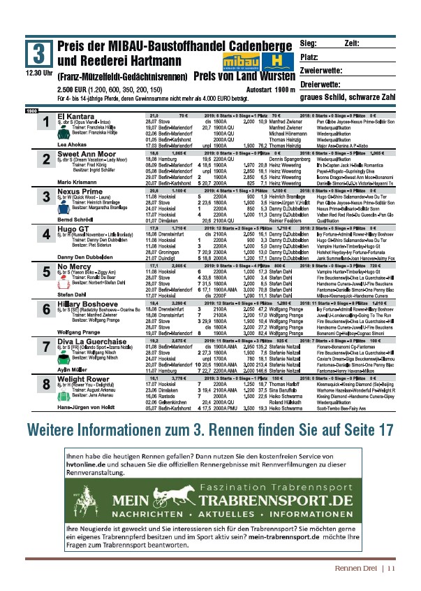 Weitere Informationen zum 3. Rennen finden Sie auf Seite 17