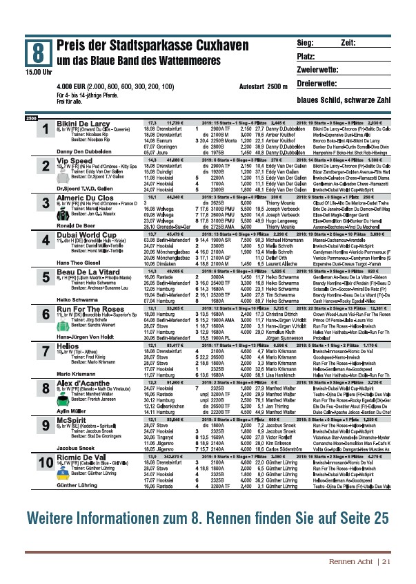 Weitere Informationen zum 8. Rennen finden Sie auf Seite 25