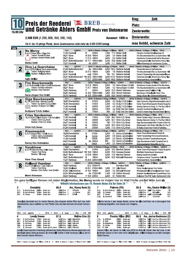 Weitere Informationen zum 10. Rennen finden Sie auf Seite 25