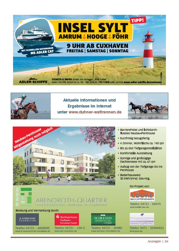 Anzeigen | 39 Aktuelle Informationen und Ergebnisse im Internet unter www.duhner-wattrennen.de