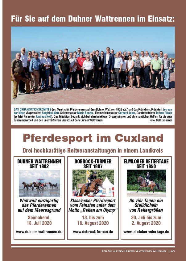 DAS ORGANISATIONSKOMITEE des „Vereins für Pferderennen auf dem Duhner Watt von 1902 e.V.“ und das Präsidium: Präsident Jos van