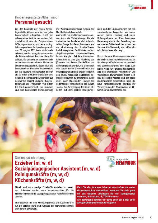 Kindertagesstätte mitzuwirken, bewerben Sie sich gerne