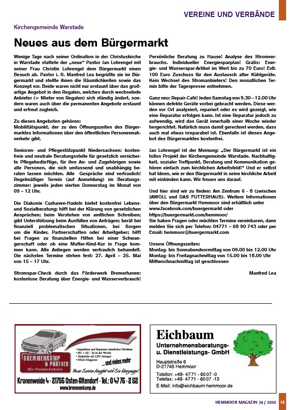 über den Bürgermarkt Hemmoor sind erhältlich unter