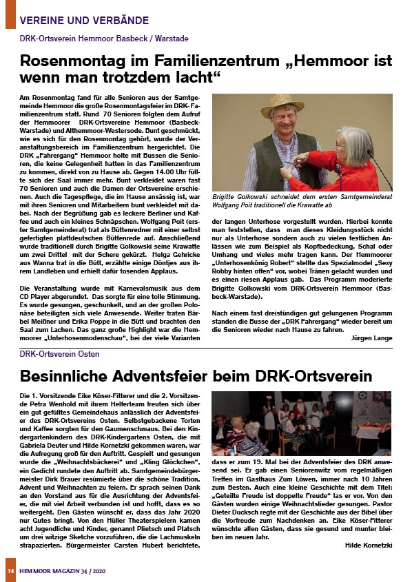 Am Rosenmontag fand für alle Senioren aus der SamtgemeindeHemmoor