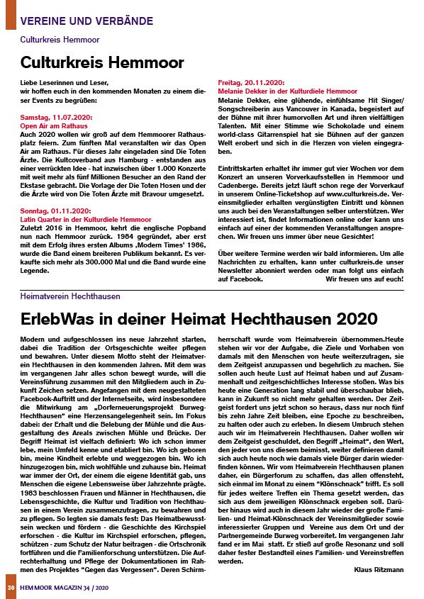 30 HEMMOOR MAGAZIN 34 / 2020