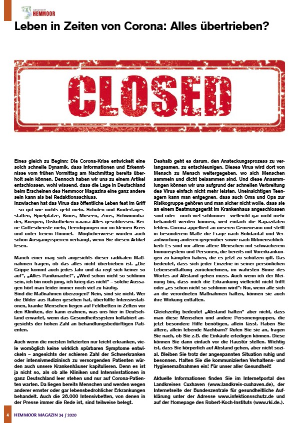 beim Erscheinen des Hemmoor Magazins eine ganz andere