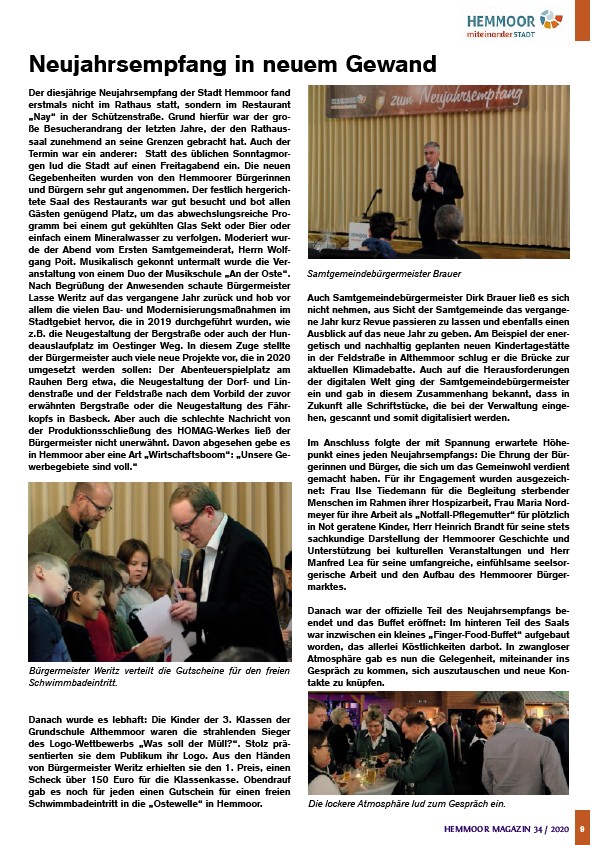Der diesjährige Neujahrsempfang der Stadt Hemmoor fand