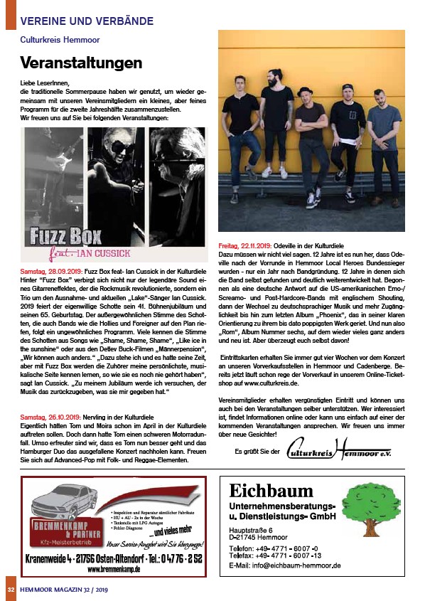 an unseren Vorverkaufsstellen in Hemmoor und Cadenberge. Bereits