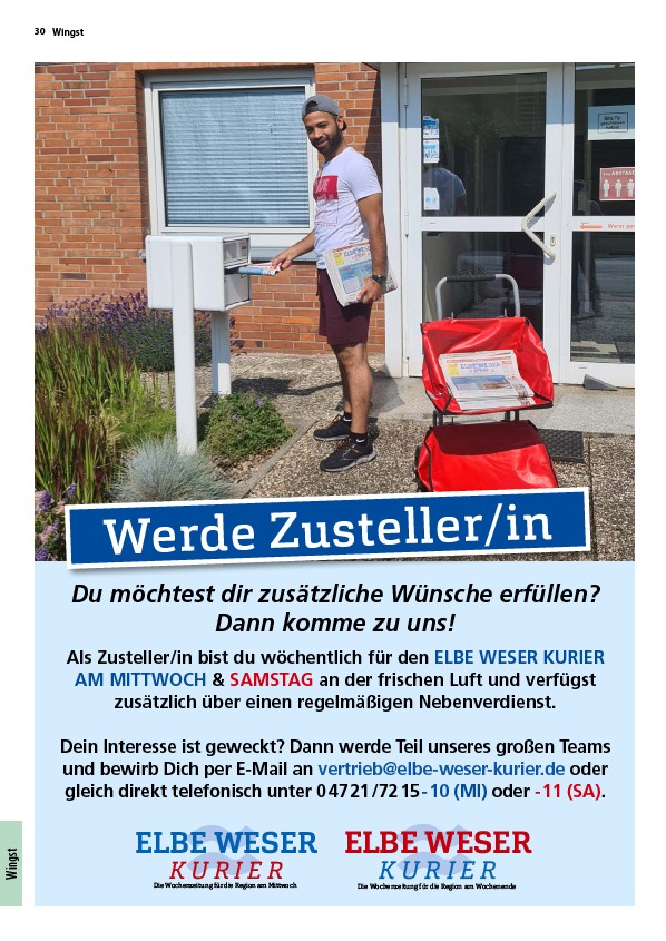 Als Zusteller/in bist du wöchentlich für den Elbe Weser Kurier