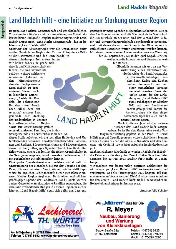 können. „Land Hadeln hilft“ setzt sich dafür ein, dass entgegengenommene