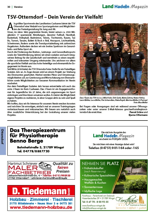 Seit Mitte 2018 bietet der TSV Otterndorf eine Stelle für ein Freiwilliges