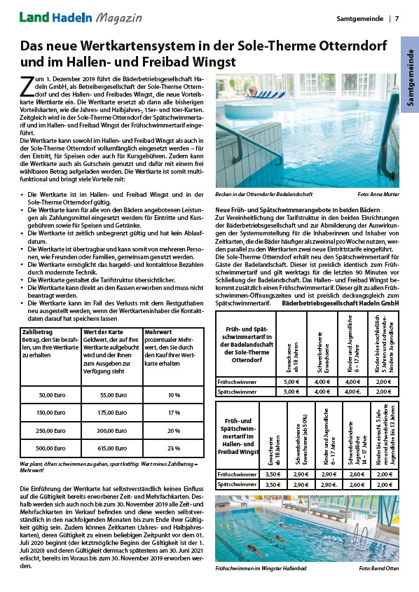 und im Hallen- und Freibad Wingst der Frühschwimmertarif eingeführt.