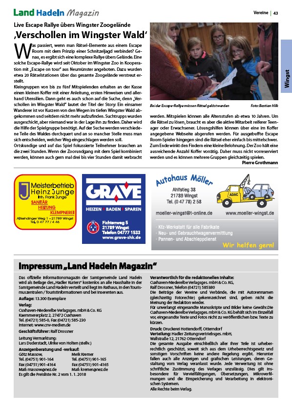 wird als Beilage des „Hadler Kuriers“ kostenlos an alle Haushalte in der