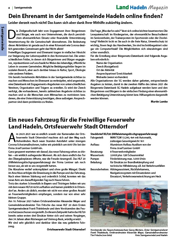 Dein Ehrenamt in der Samtgemeinde Hadeln online finden?