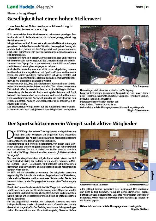 Nähere Informationen auf der Homepage www.ssv-wingst.de