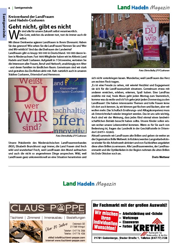 diese alten Brillen zu erneuern. Alle Landfrauenvereine, der Landfrauenmarkt
