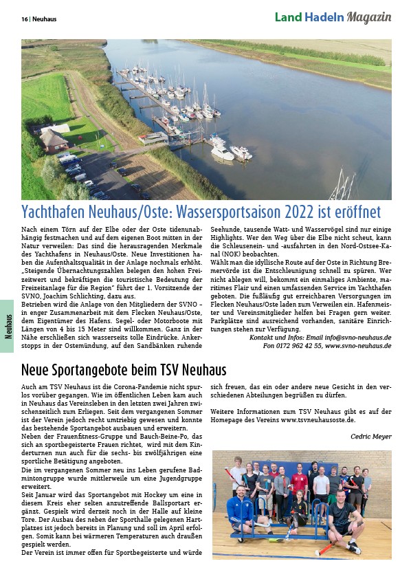 Fon 0172 962 42 55, www.svno-neuhaus.de