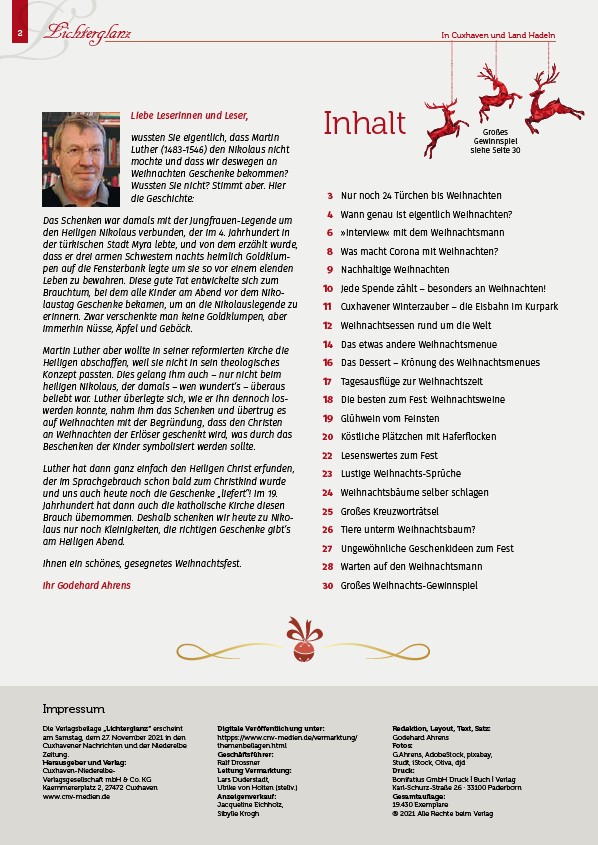 Die Verlagsbeilage „Lichterglanz“ erscheint