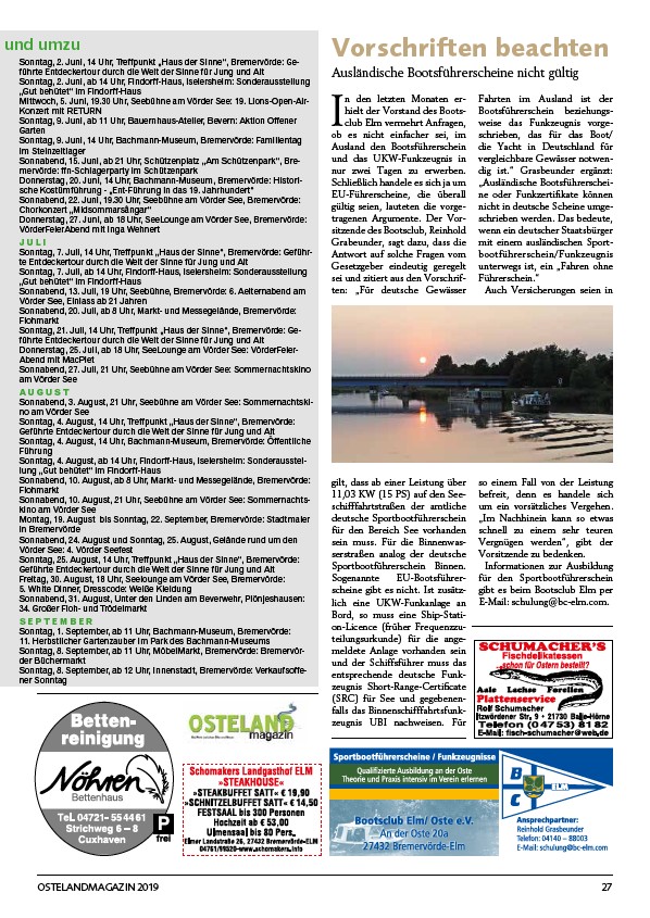 Freitag, 30. August, 18 Uhr, Seelounge am Vörder See, Bremervörde: