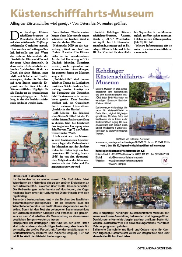 Alltag der Küstenschiffer wird gezeigt / Von Ostern bis November geöffnet