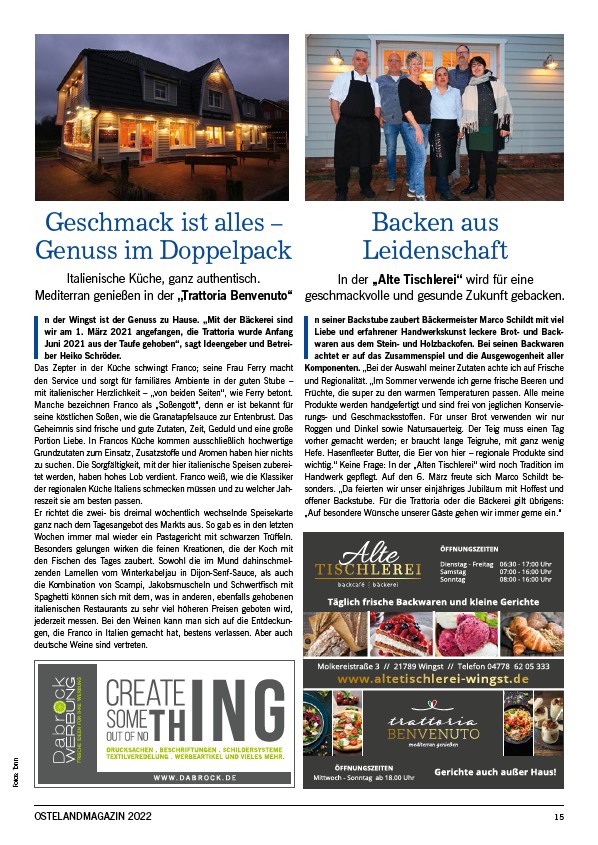 offener Backstube. Für die Trattoria oder die Bäckerei gilt übrigens: