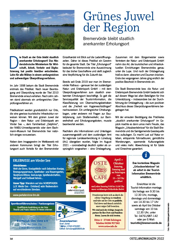 Magazin „Urlaubserlebnisse“ für die Stadt Bremervörde