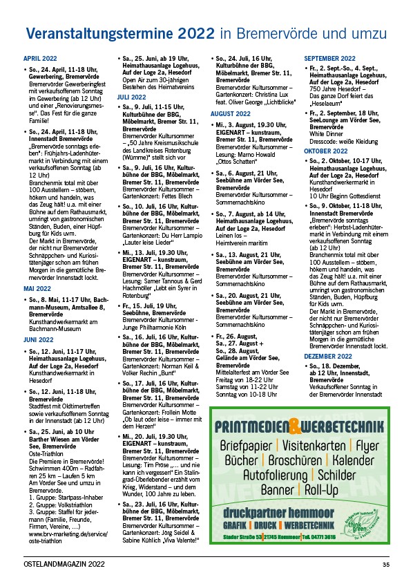 Veranstaltungstermine 2022 in Bremervörde und umzu