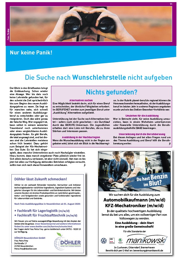 Die Suche nach Wunschlehrstelle nicht aufgeben