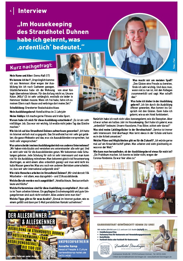 Wie viele Menschen arbeiten im Strandhotel Duhnen? „Wir sind derzeit 104