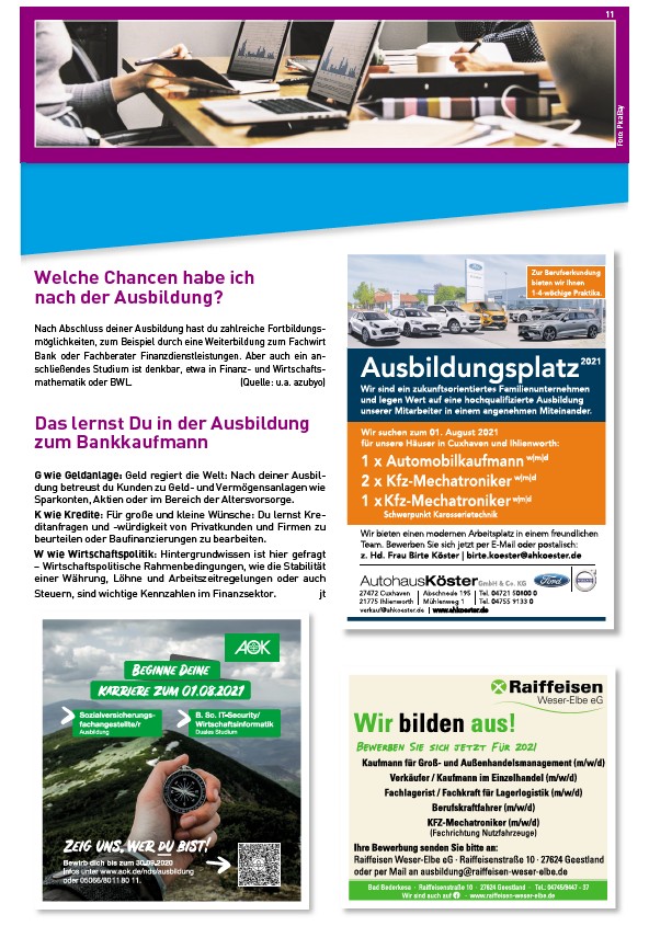 Bank oder Fachberater Finanzdienstleistungen. Aber auch ein anschließendes