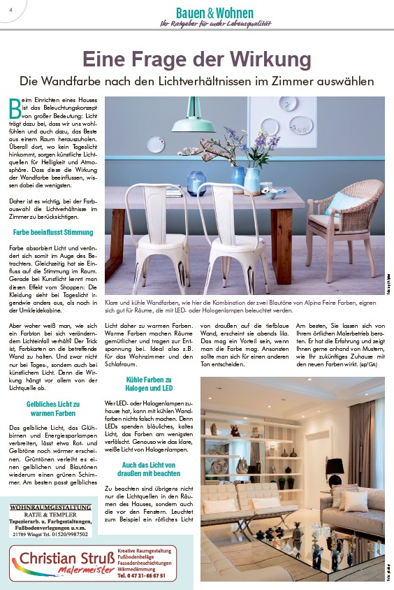 Die Wandfarbe nach den Lichtverhältnissen im Zimmer auswählen