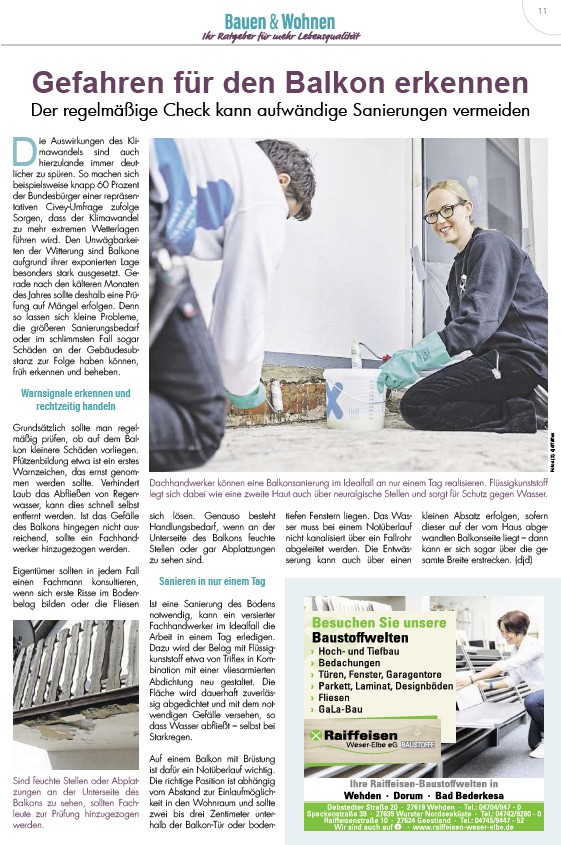 Dachhandwerker können eine Balkonsanierung im Idealfall an nur einem Tag realisieren. Flüssigkunststoff