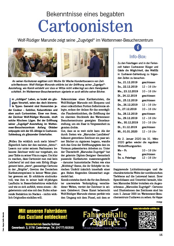Wolf-Rüdiger Marunde zeigt seine „Zugvögel“ im Wattenmeer-Besucherzentrum