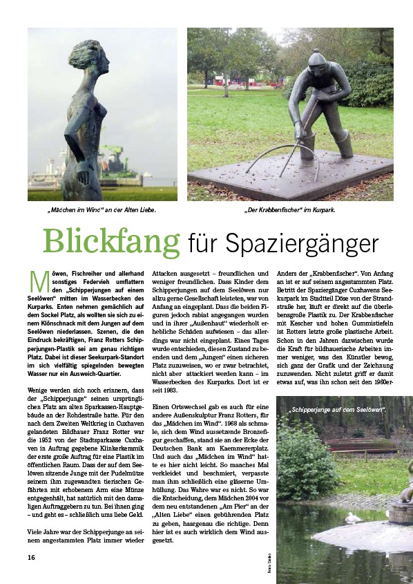 „Mädchen im Wind“ an der Alten Liebe. „Der Krabbenfischer“ im Kurpark.