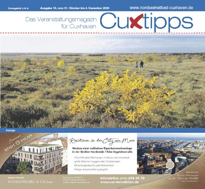 1 Schutzgebühr 0,50 € Ausgabe 10, vom 31. Oktober bis 4. Dezember 2020 www.nordseeheilbad-cuxhaven.de Das Veranstaltungsmagazin für Cuxhaven Anzeige