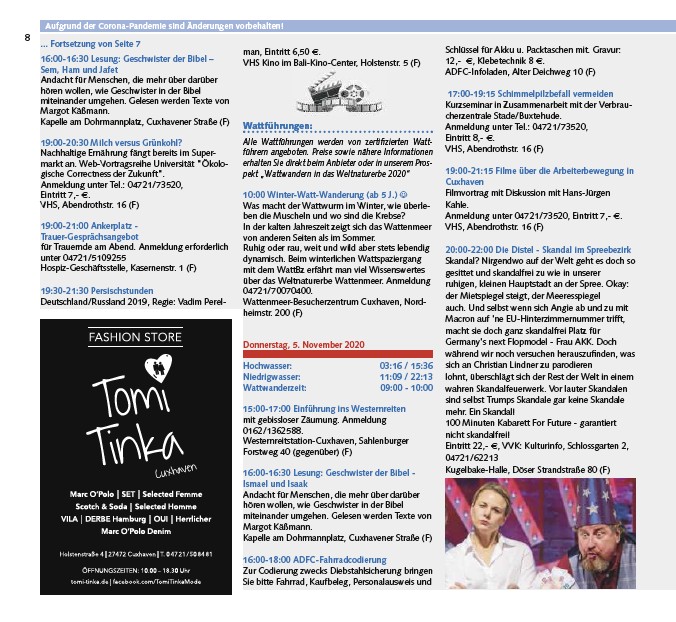 Anmeldung unter 04721/73520, Eintritt 7,- €.