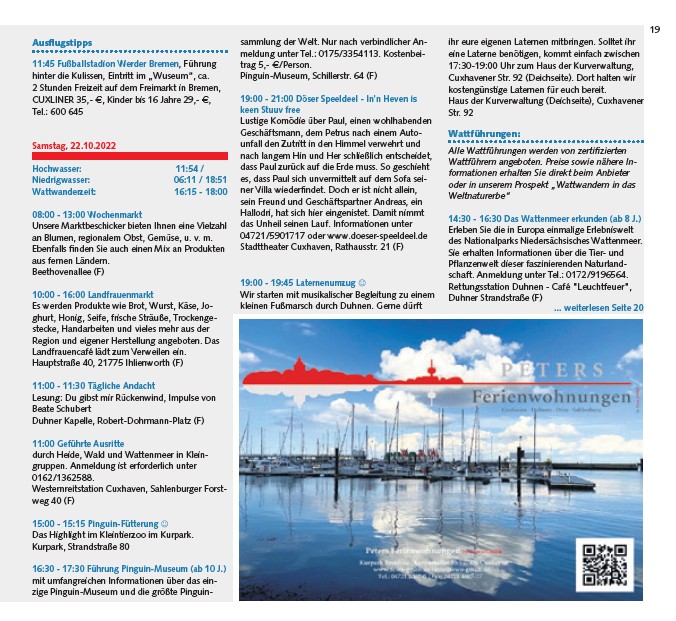 Wattführern angeboten. Preise sowie nähere In-formationen