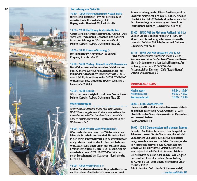 Wattführern angeboten. Preise sowie nähere In-formationen