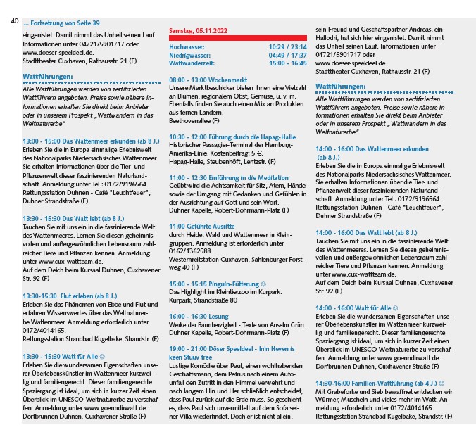 Wattführern angeboten. Preise sowie nähere In-formationen