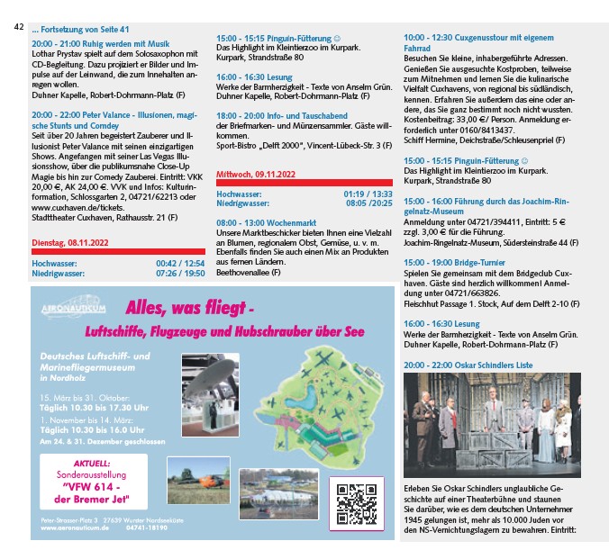 Anmeldung unter 04721/394411, Eintritt: 5 z